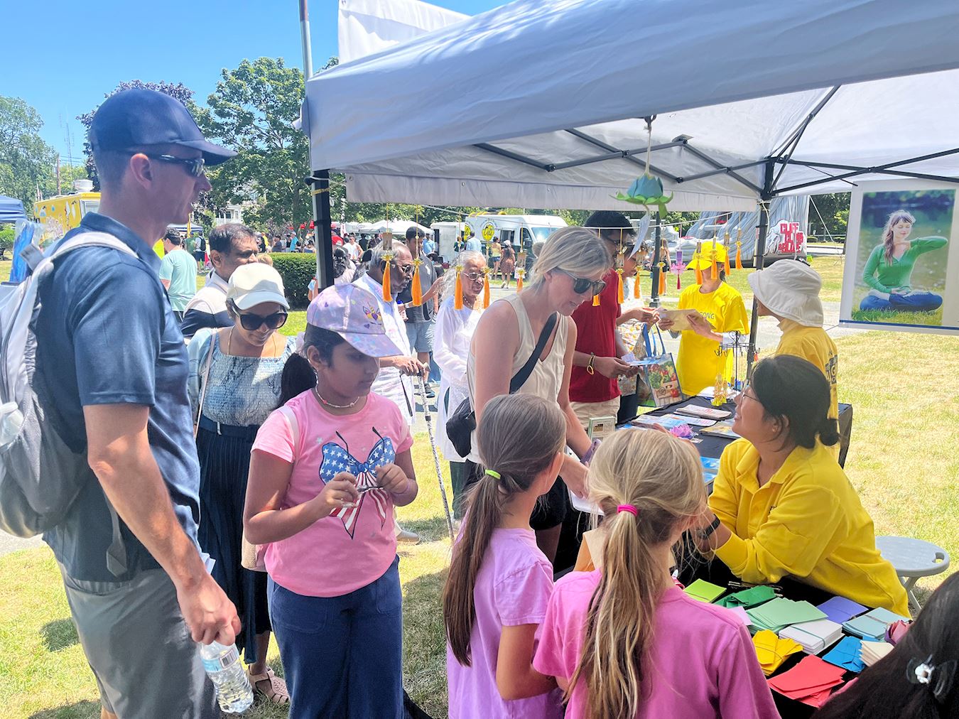 【明慧网二零二五年八月十日】二零二五年八月二日星期六,天气晴朗,阳光明媚。美国麻萨诸塞州和罗德岛州的部分法轮功学员参加了位于波士顿城北的伯灵顿举办的“欢庆伯灵顿(Celebrate Burlington)”活动。学员向人们介绍法轮功及讲述中共迫害法轮功的真相。