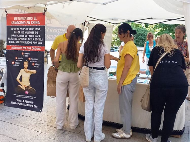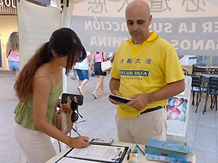两位年轻女孩玛丽亚(María)和宝拉(Paula)从未听说过强摘器官。宝拉表示:“我觉得这太丧心病狂了。在中共这样的政权下,每个人的基本权利都受到侵犯。我们是人,我们有权力、有自由在有尊严的环境中生活。无论我们的身份或意识形态如何,任何政府或个人都不应该侵犯人的权利,剥夺人的自由。” 玛丽亚补充道:“这个问题非常重要,我们必须考虑并帮助他人。” 她们俩都签署了呼吁停止迫害和强摘器官的请愿书。