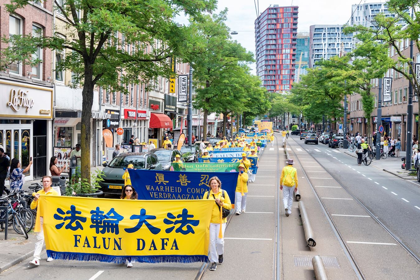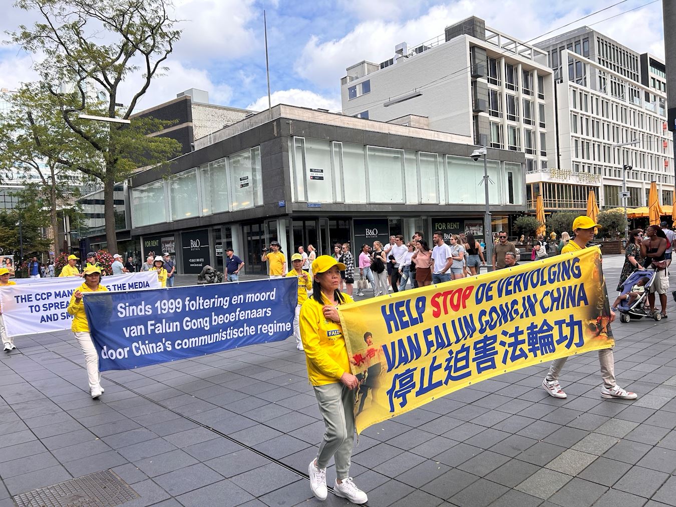活动包括集会和两场游行,从鹿特丹剧院广场开始,由天国乐团打头,经过唐人街、范奥尔登巴内维尔特广场(Van Oldenbarneveltplaats)和宾尼韦格广场(Binnenwegplein)最后返回剧院广场,学员们手持“法轮大法好”、“真善忍好”、“停止迫害法轮功”、“制止中共活摘器官”、“法轮功反迫害二十六周年”、“四亿多人已退出党团队”、“中共开始跨国镇压海外法轮功学员”、“中共操控媒体散布虚假消息诋毁法轮功”等横幅,沿途吸引众多民众驻足观看。
