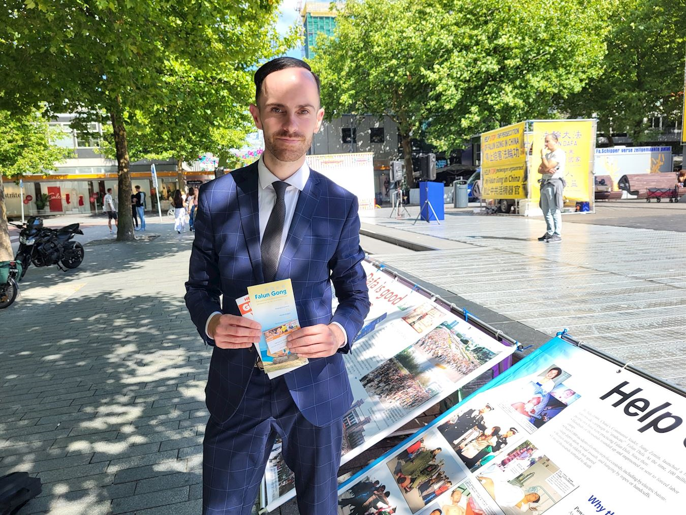 来自荷兰鹿特丹Open Rotterdam TV的记者埃尔玛·利维(Elmar Levy)在活动场地驻足良久,接受采访时他表示,自己大约在两年前开始多次在阿姆斯特丹、鹿特丹等地接触到法轮大法的活动,并了解到其修炼原则真、善、忍对于改善人生具有深远意义。他认为中共对法轮大法学员的迫害“非常不人道,也令人心痛。”