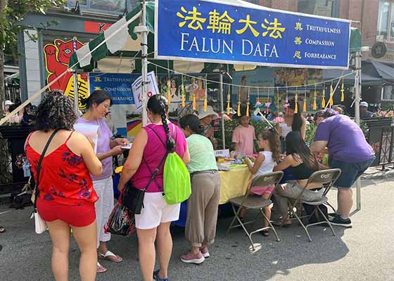 美国马萨诸塞州民俗节 华人赞法轮功做的真好