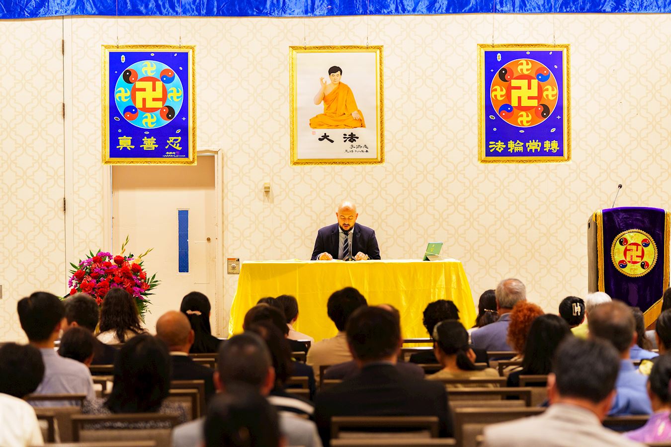 法会上也有数位亚裔法轮功学员交流了他们的修炼心得。二零二二年七月,泉(Quan)在YouTube上寻找一些有助于身体健康的锻炼视频,结果看到了法轮功的页面。仿佛有一股力量引导着他,点开了师父的教功视频。那些动作深深吸引了他,便跟着一起炼。了解到法轮功具有神奇的祛病健身效果,泉立刻想到了远方的姐夫,身体一向不好,经常生病。于是泉打电话告诉他关于法轮功的事情。没想到,姐姐和姐夫早就开始修炼法轮功好几个月了。姐夫告诉泉,法轮功非常好,自从他开始修炼后,就不再生病,也不再吃药去医院了。他鼓励泉继续炼下去。二零二二年底,泉回国探亲。姐姐一家和其他几位法轮功学员与他交流,泉真正明白了什么是修炼,正式走上修炼之路。回美国后,泉的母亲也开始修炼法轮功了。