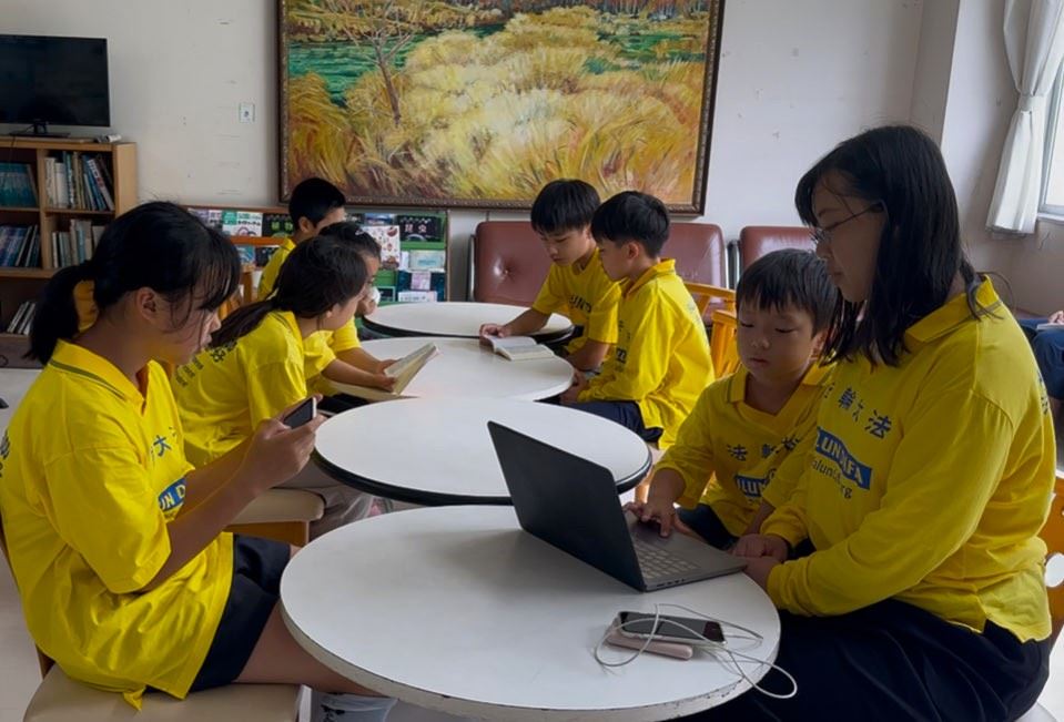 '图3~4:大法小弟子们在一起读《转法轮》'