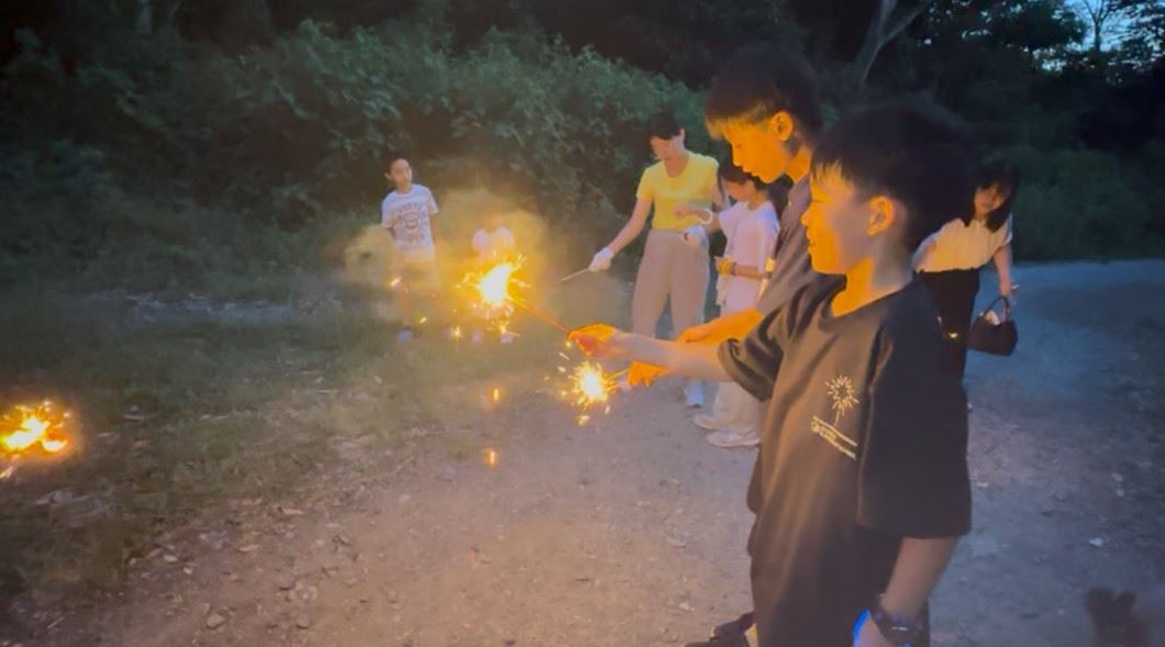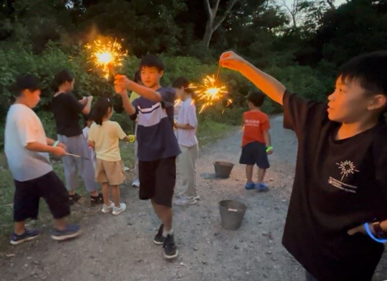 此外,晚饭后孩子们还去院子里放烟花,孩子们的脸上都洋溢着兴奋和喜悦的表情,个个开怀大笑。因日本对使用火的规定严格,孩子们享受了难得的尽情放烟火的快乐时光。