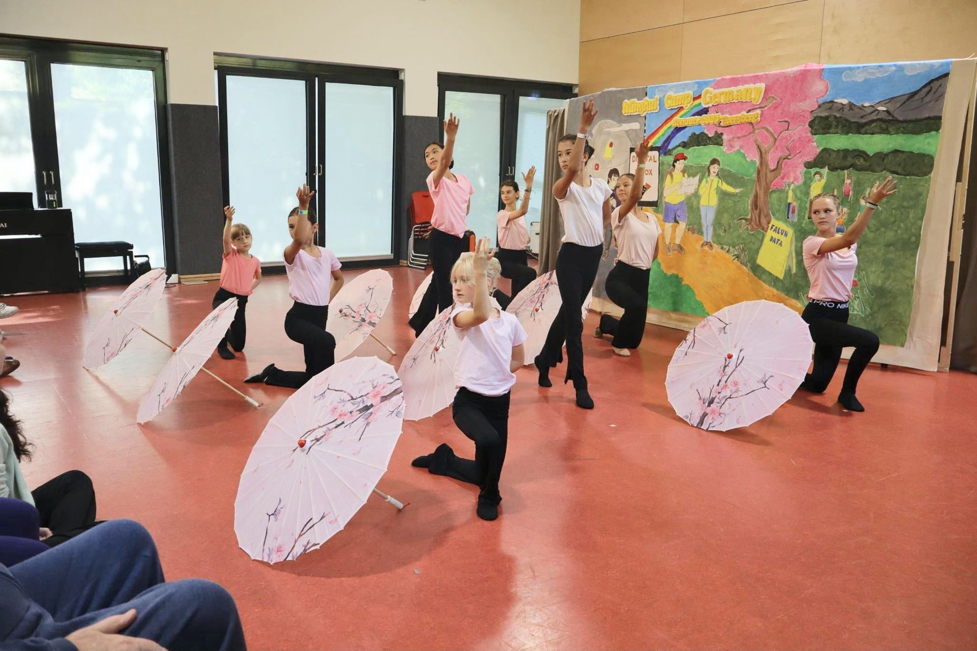 在夏令营中,孩子们可以学习各种传统艺术,如中国功夫、中国古典舞、合唱、戏剧表演、击鼓以及各种独奏乐器。通过这些多样化的课程,孩子们有机会发现自己的天赋,进一步培养自己的能力,并在法轮大法修炼中找到自己的路。周末的闭幕演出成为一周夏令营活动的高潮,孩子们以生动的方式向前来观看演出的当地民众展示并介绍了法轮大法。