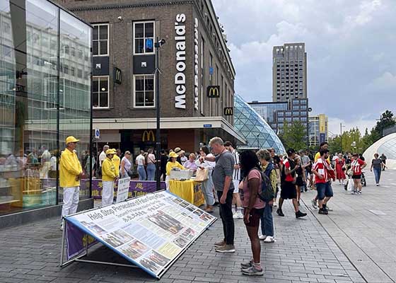 7月26日,法轮功学员来到荷兰南部的爱因霍温,向人们讲述修炼法轮功使人祛病健身、身心受益,而在其发源地——中国却受到长期残酷迫害的真相,受到民众支持和欢迎。