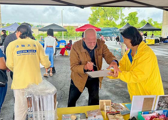 九月六日在哈德逊河畔的詹宁斯码头举行了一場河畔音乐节,由纽约州府奥本尼市文化事务办公室主办,法轮功学员设立了展位。