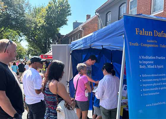 九月十三日举办的“街头节庆”活动上,马里兰州的法轮功学员向民众介绍法轮大法,并让人们了解中共迫害法轮功的真相。