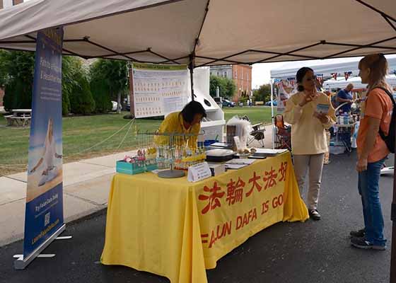 二零二五年九月十三日,法轮功学员在纽约上州卡纳乔哈里历史古镇的街会上向民众讲真相。