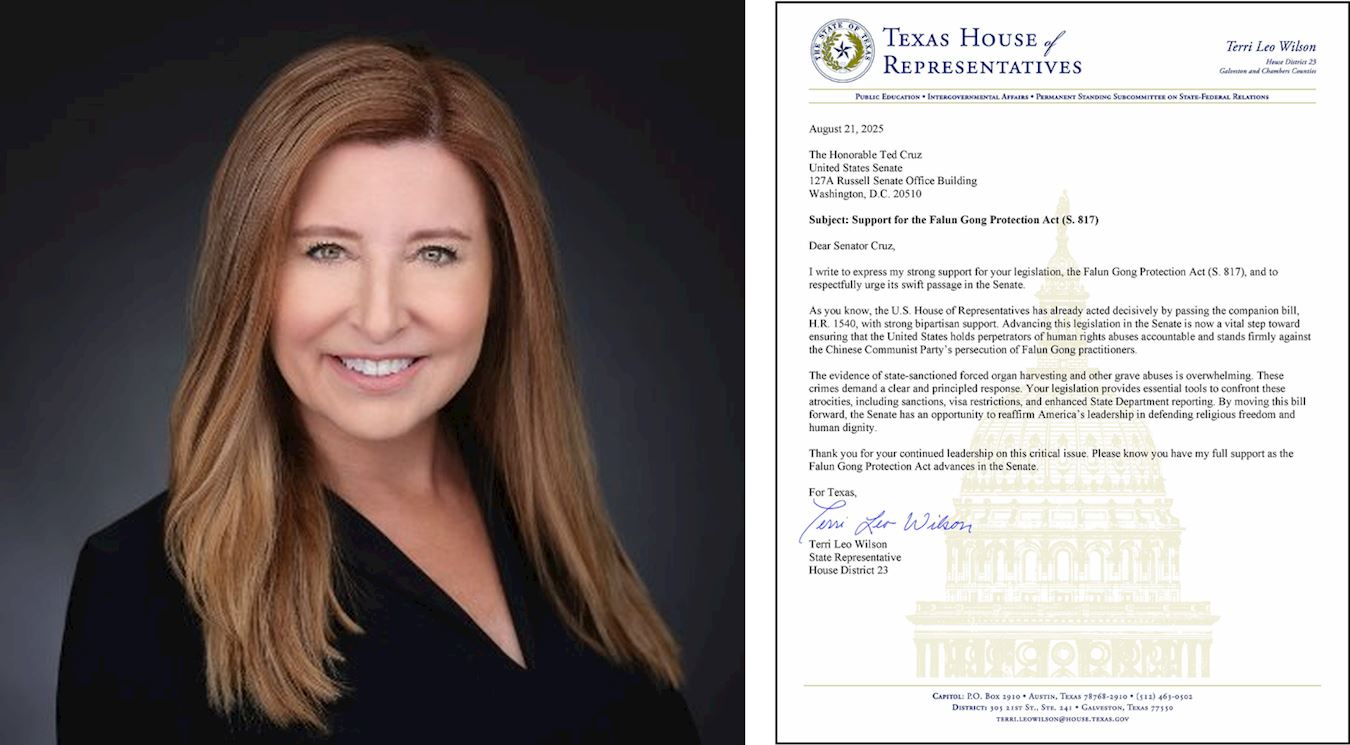 德州众议院第十五选区众议员泰瑞·里奥·威尔逊(Terri Leo Wilson)在信中说:“在参议院推动这项立法,现已成为确保美国追究侵犯人权者责任、并坚决反对中国共产党迫害法轮功修炼者的关键一步。”