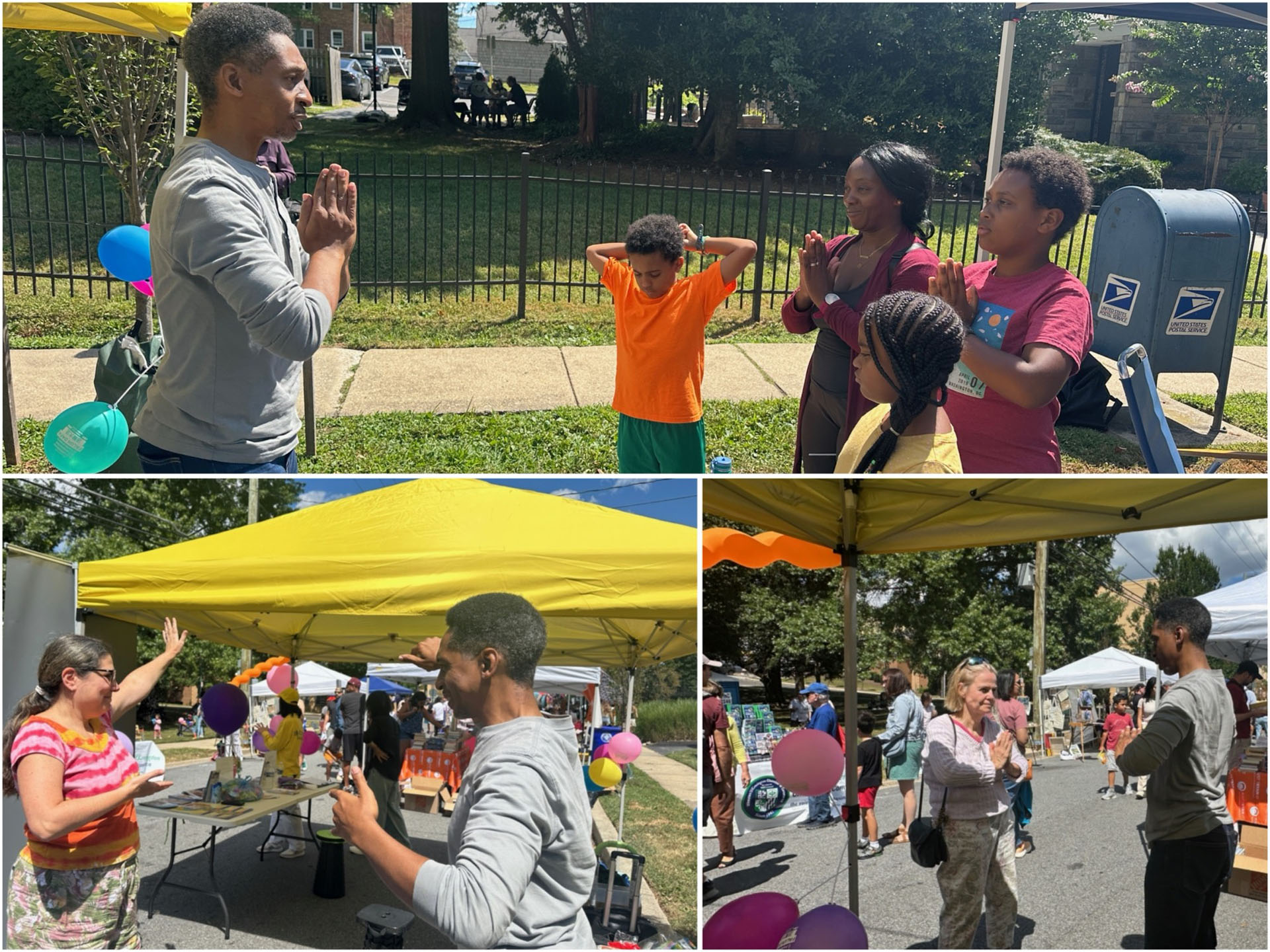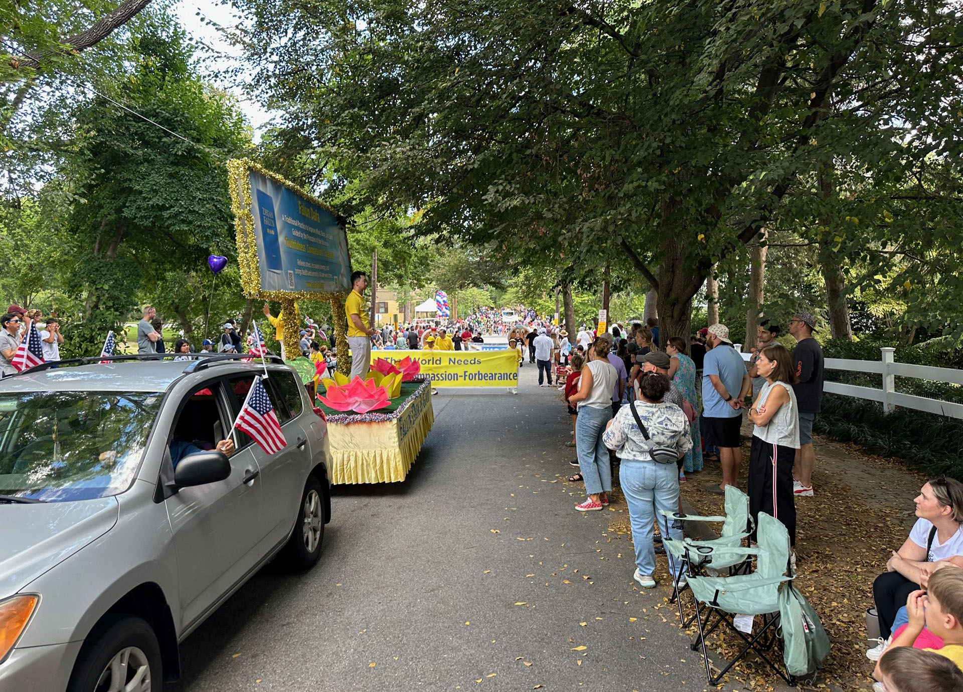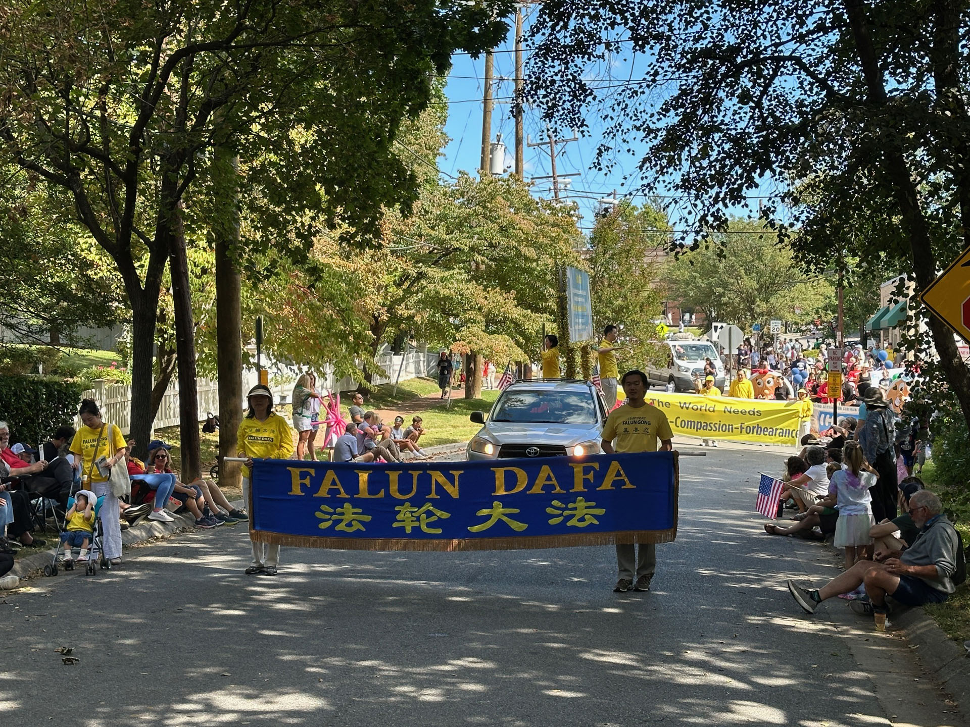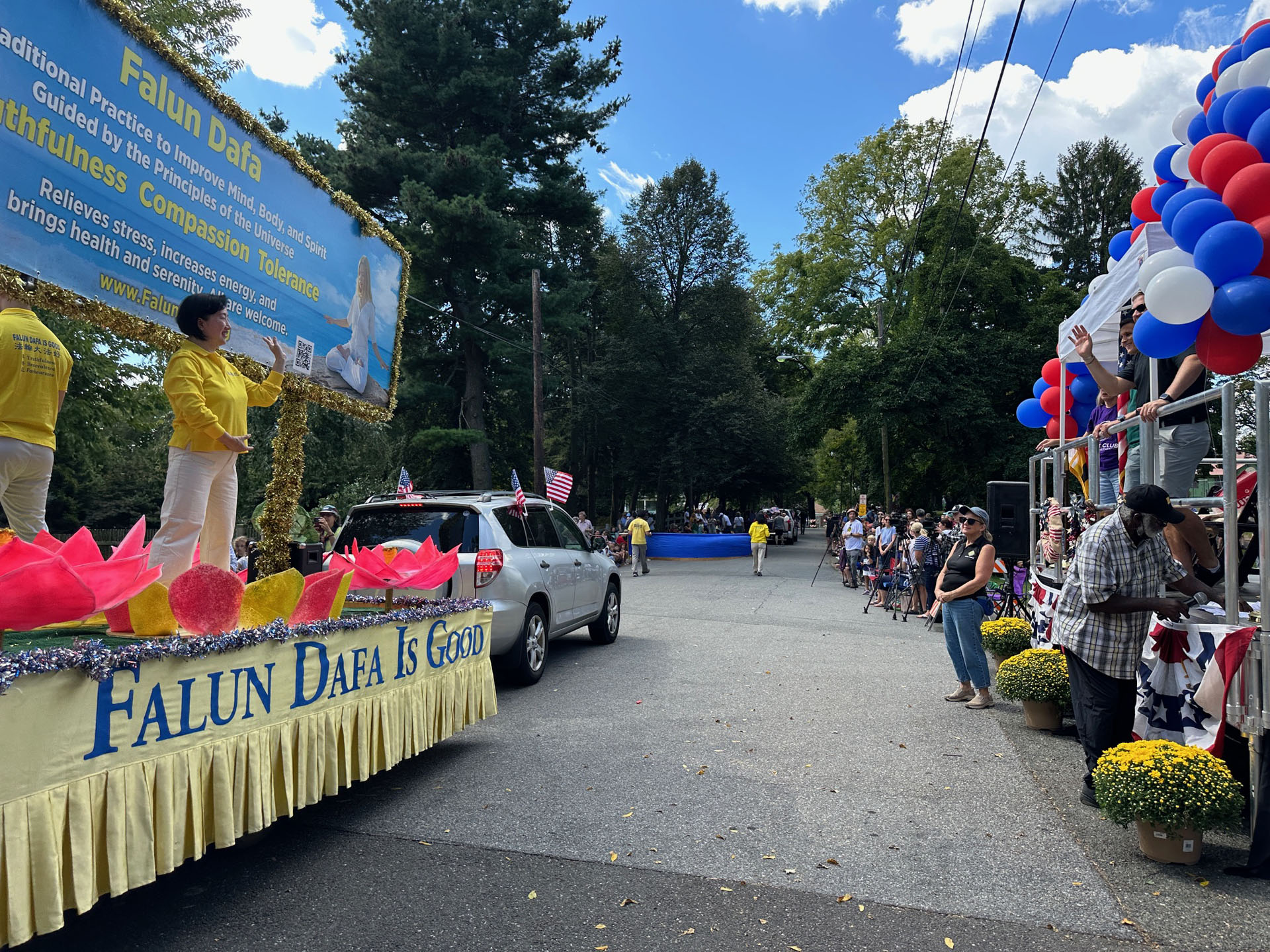 在游行起点亦即终点的广场上,法轮功学员也通过照片展及演讲,告诉路人大法的美好并揭露中共二十六年来的迫害。