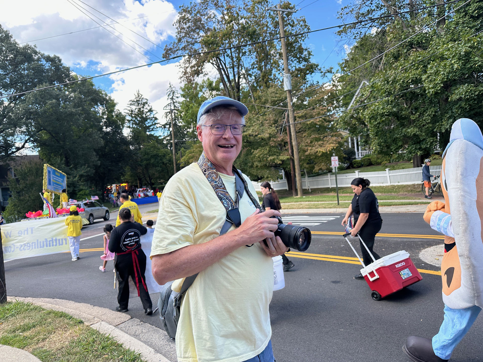 从事能源工作的克劳迪娅(Claudia)一家三口在路边看着游行队伍经过,她认为:“游行非常丰富多彩,传递的讯息也非常好,就是那三个字:真善忍。”