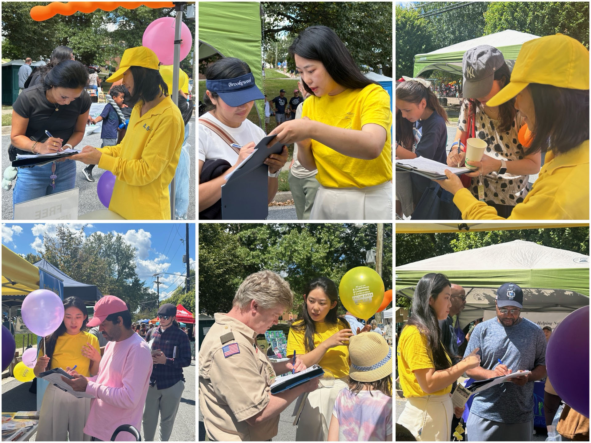 她们都签名支持法轮功学员:“人们应该有自由表达信仰的权利,不该遭受酷刑或杀害。”“尤其这(法轮功)是非常和平的,真心希望他们能自由践行信仰。”她们也谈道:“整个展览都很打动我们,最重要的是这里的人们(法轮功学员)对我们非常友善,我们觉得必须尽全力支持她们。”“是的,我们对法轮功也很好奇,渴望能了解更多。”