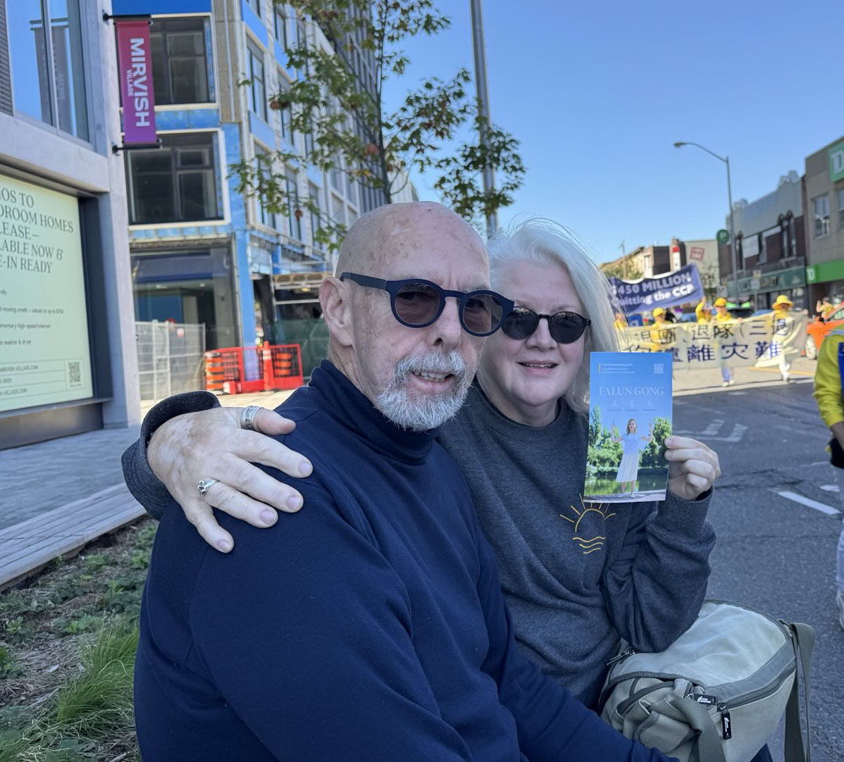 露西(Lucy)和丈夫巴福雷(Buffery)与法轮功学员交谈许久,了解到法轮功的真相,并得知了中共在加拿大境内对法轮功学员的跨国镇压。