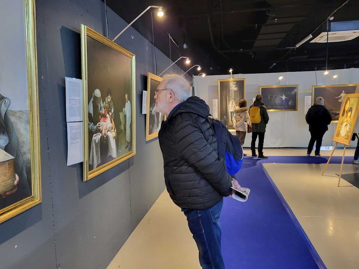 ![]() 图1~7:真善忍国际美术展在比利时第四大城市法语区列日市,二零二五年十二月十二日至二零二六年一月十一日一个月的展出。参观人员络绎不绝。 |