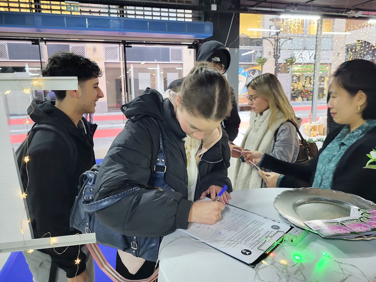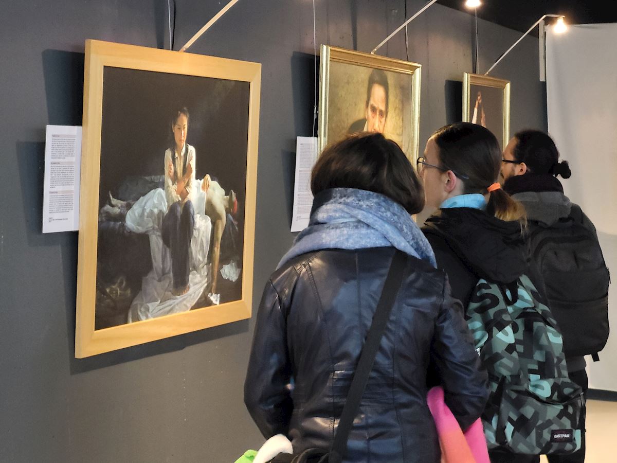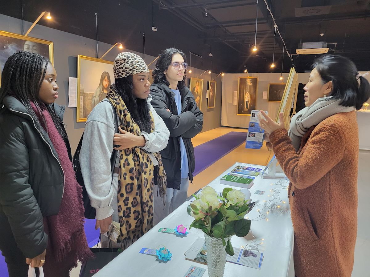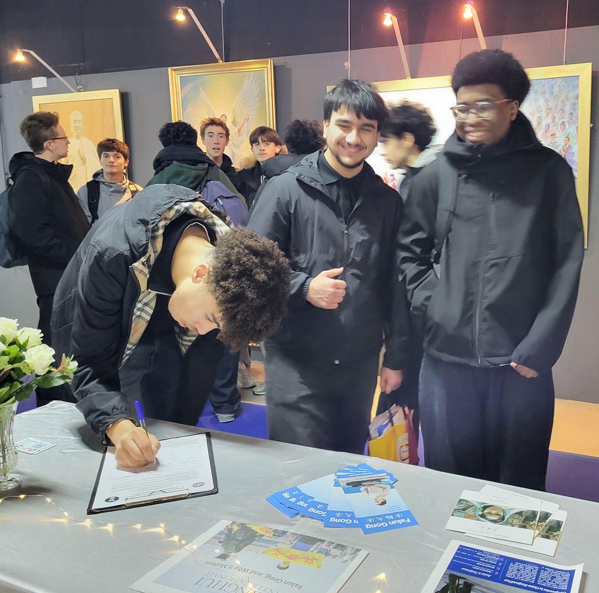 此次画展吸引了许多年轻人和学生,他们静静的聆听、观看和思考着画作带给他们的震撼。纷纷签名反迫害。