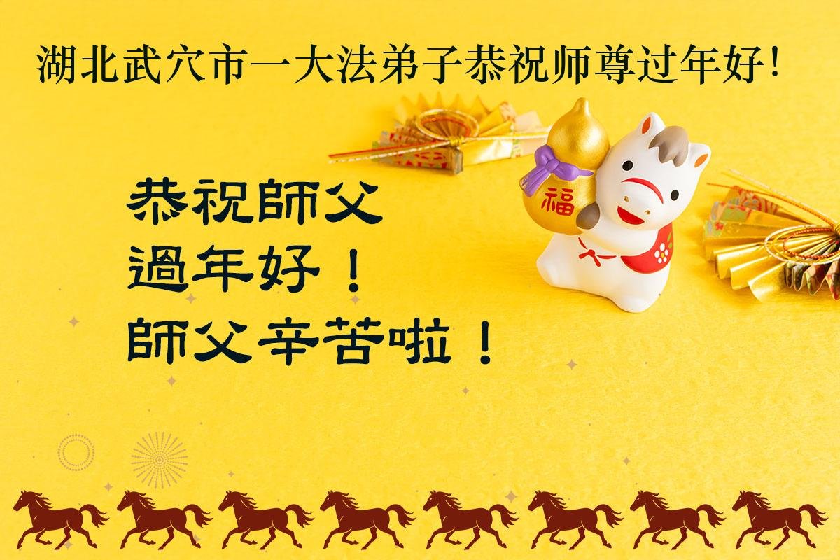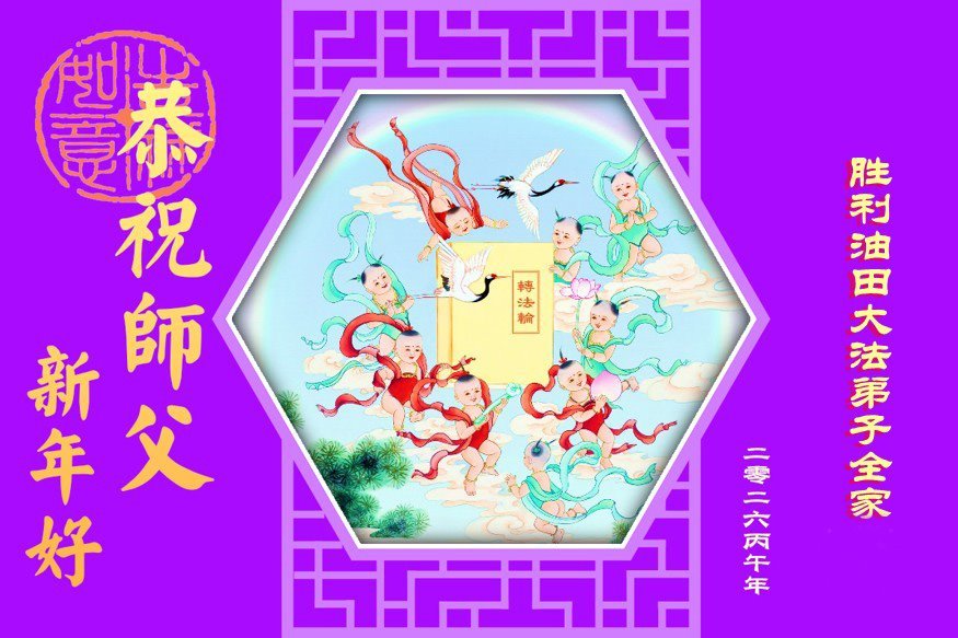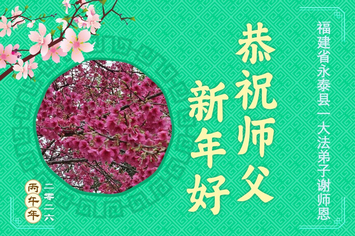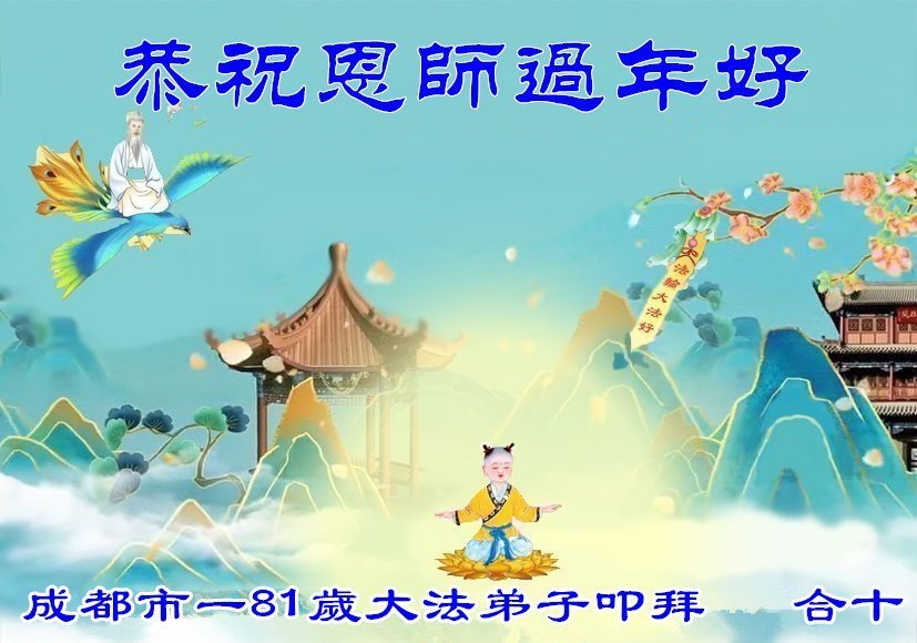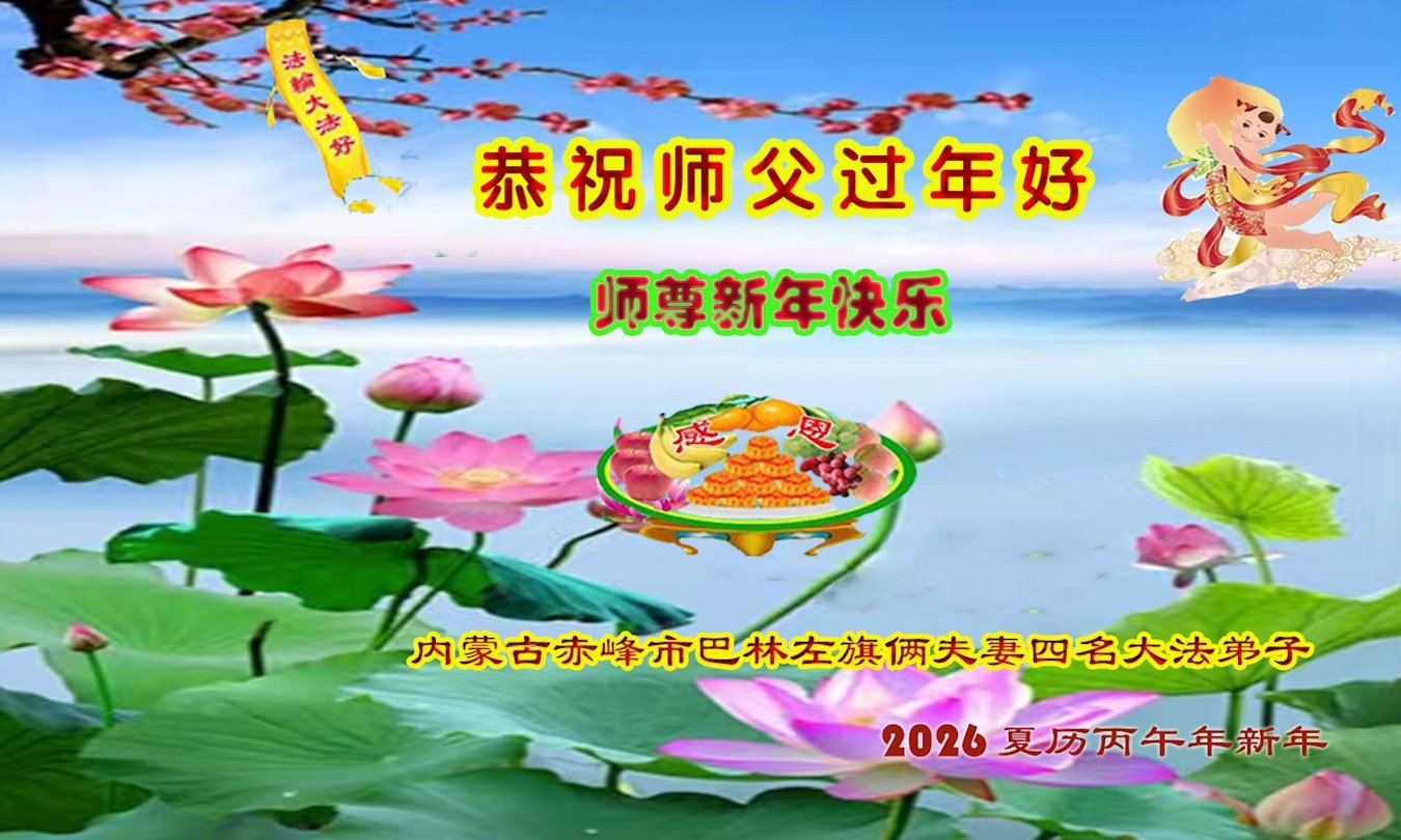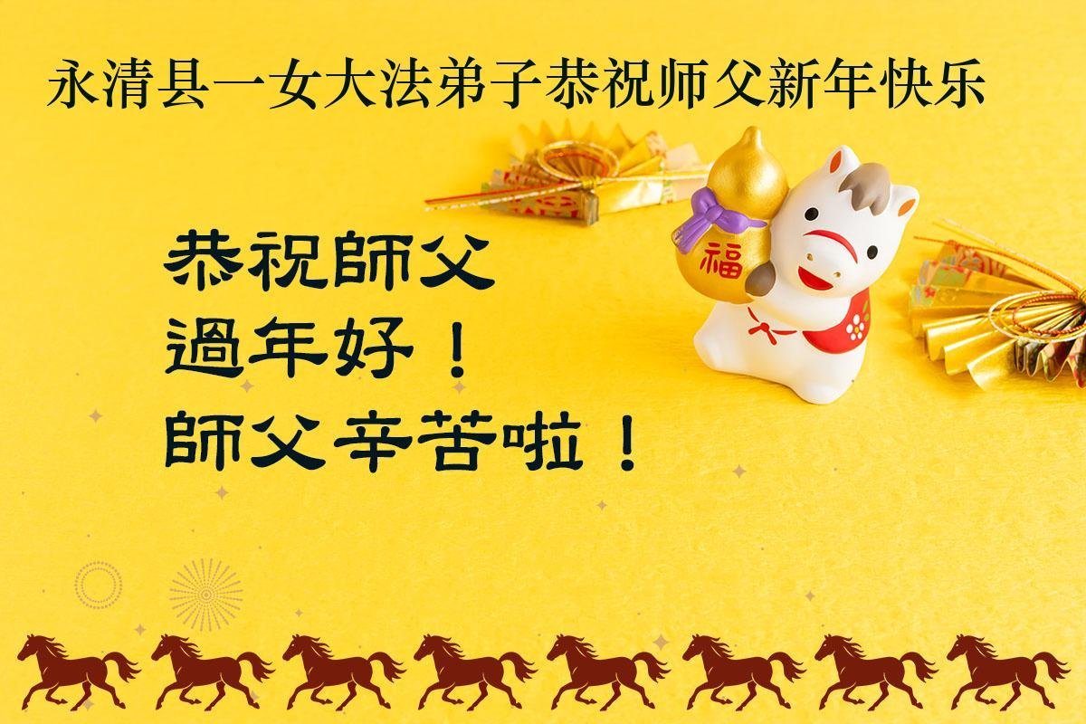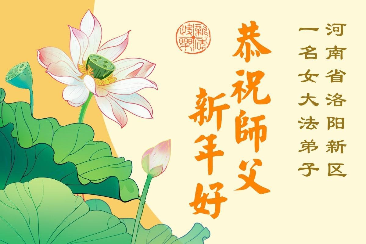 师父,祝您新年快乐!我非常幸运能得大法,我会努力改進我的言行举止。我很幸运,师父救了我一命:当时我开车时被一辆飞驰的摩托车撞倒,我闭上了眼睛,没有意识到发生了什么。师父,我的母亲也得到您的保护。
