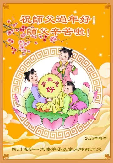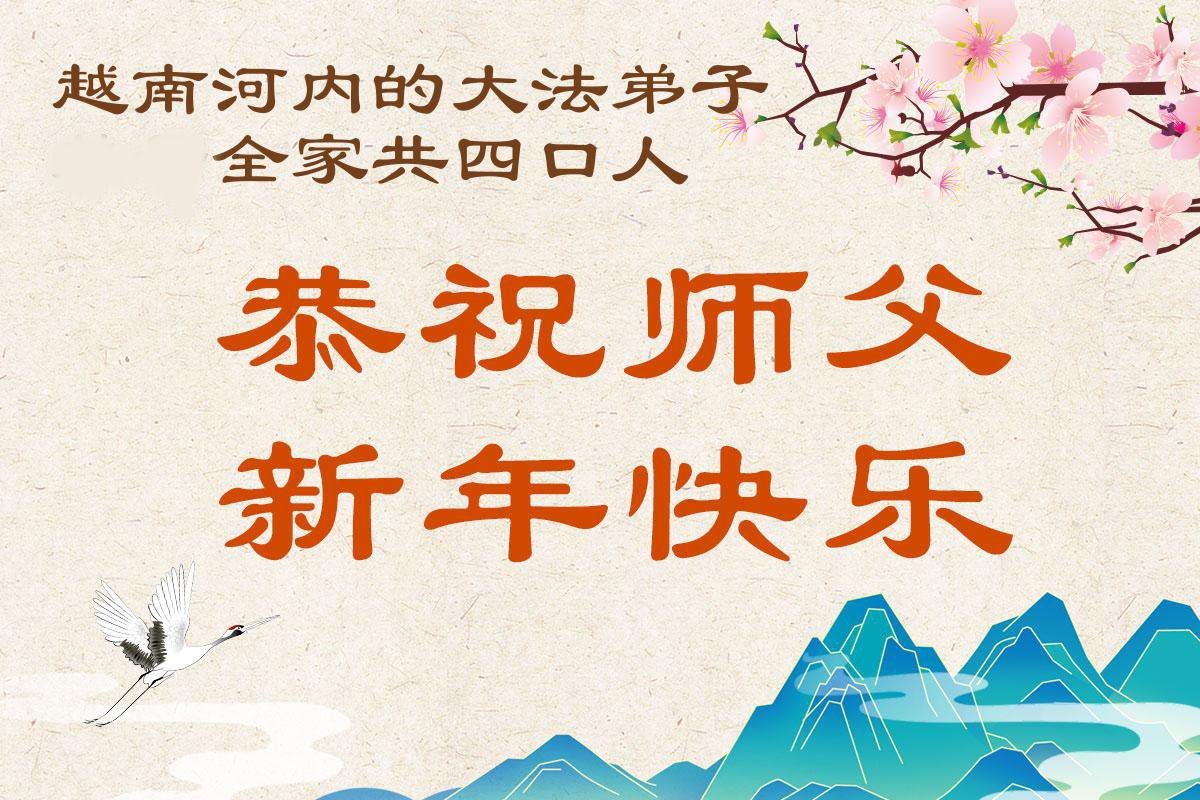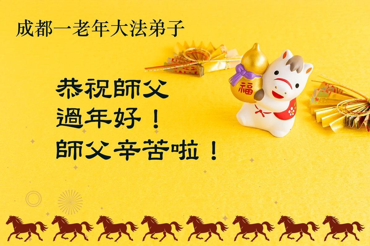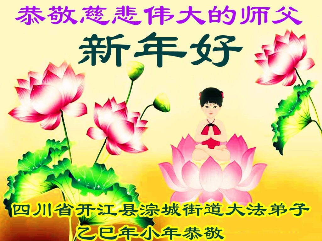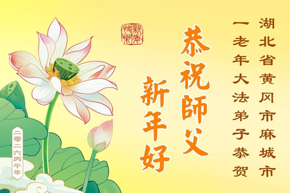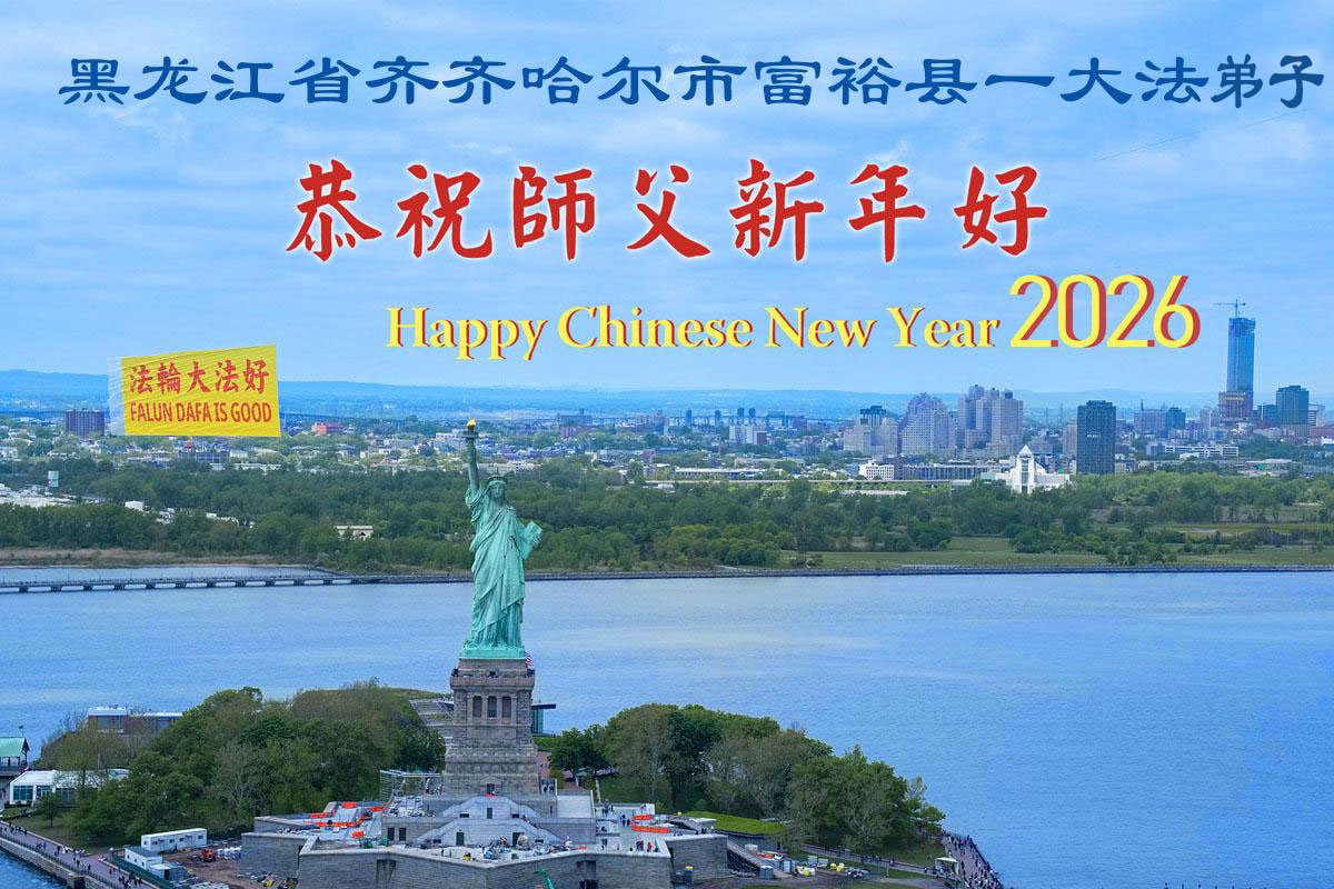 师父,祝您新年快乐!我非常幸运能得大法,我会努力改進我的言行举止。我很幸运,师父救了我一命:当时我开车时被一辆飞驰的摩托车撞倒,我闭上了眼睛,没有意识到发生了什么。师父,我的母亲也得到您的保护。