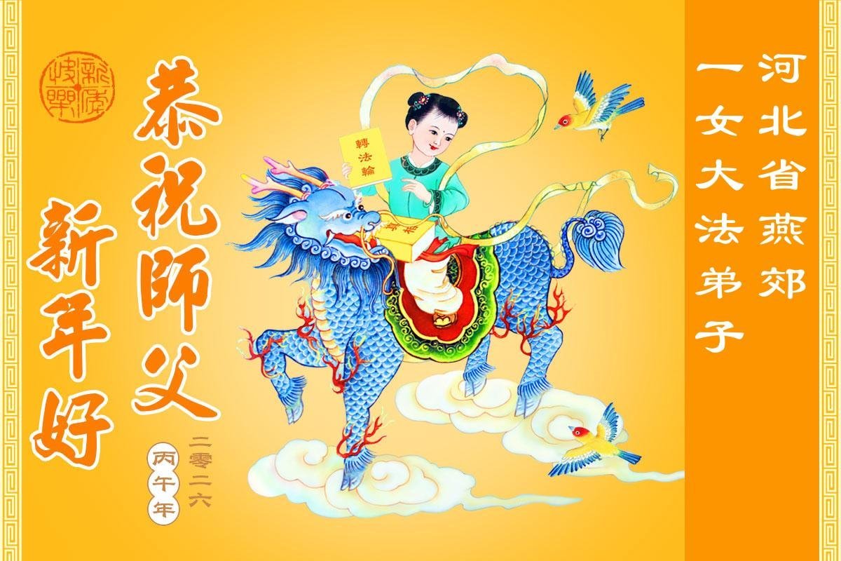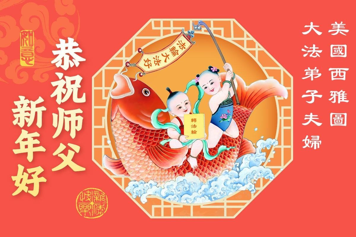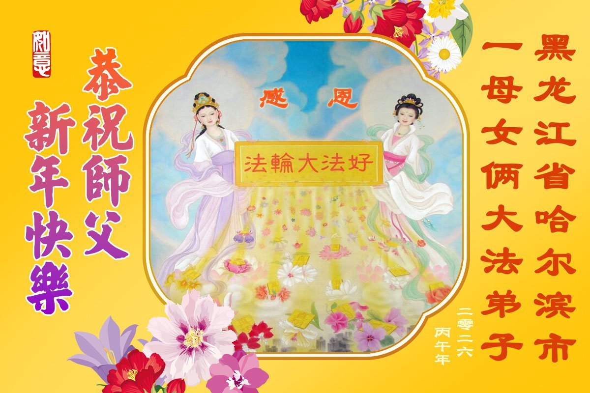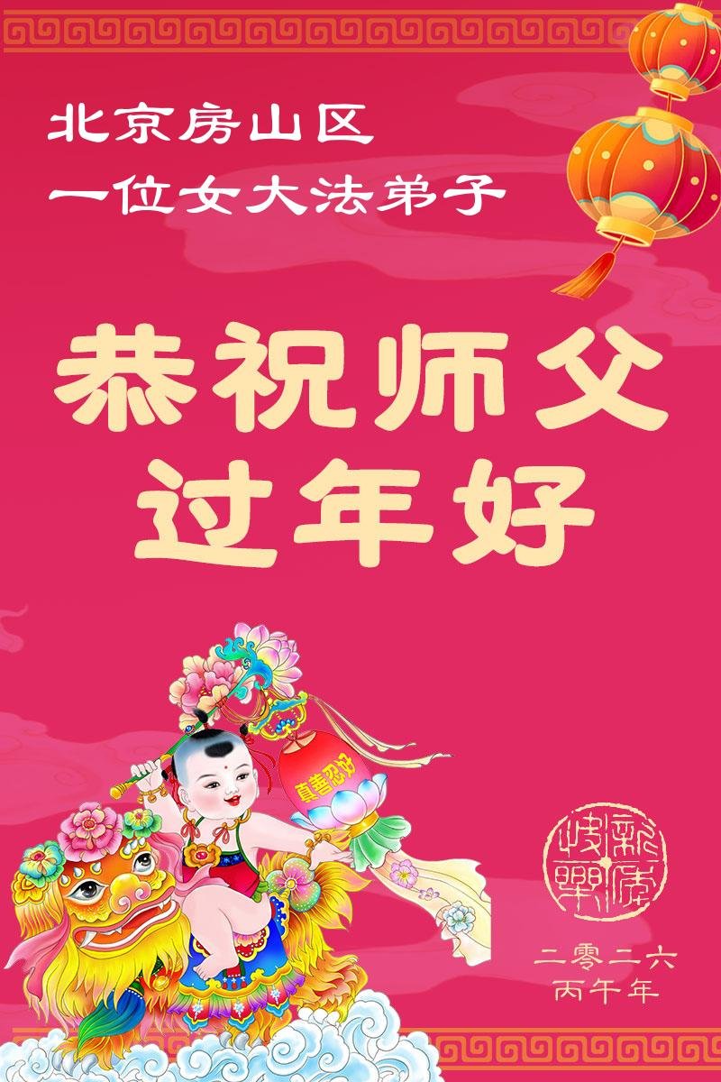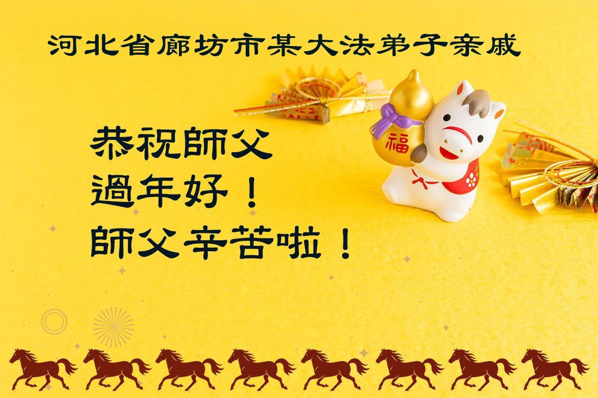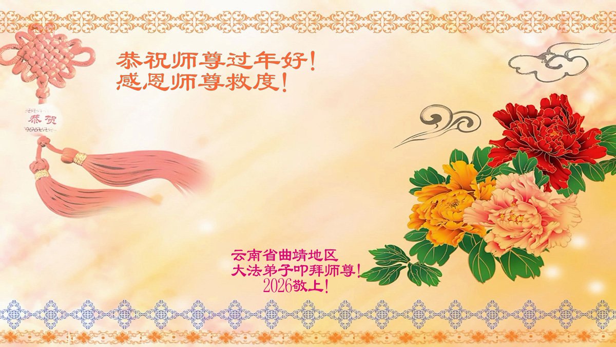 师父,祝您新年快乐!我非常幸运能得大法,我会努力改進我的言行举止。我很幸运,师父救了我一命:当时我开车时被一辆飞驰的摩托车撞倒,我闭上了眼睛,没有意识到发生了什么。师父,我的母亲也得到您的保护。