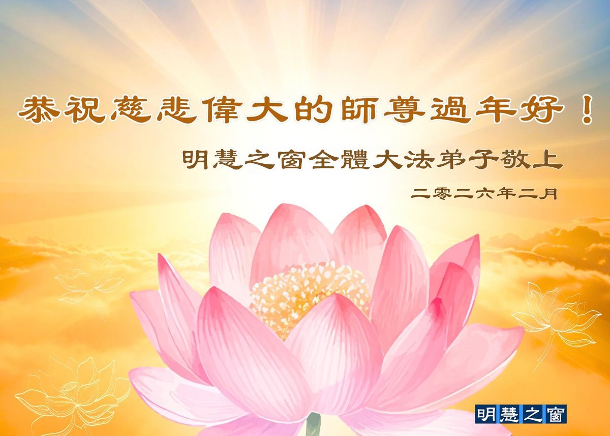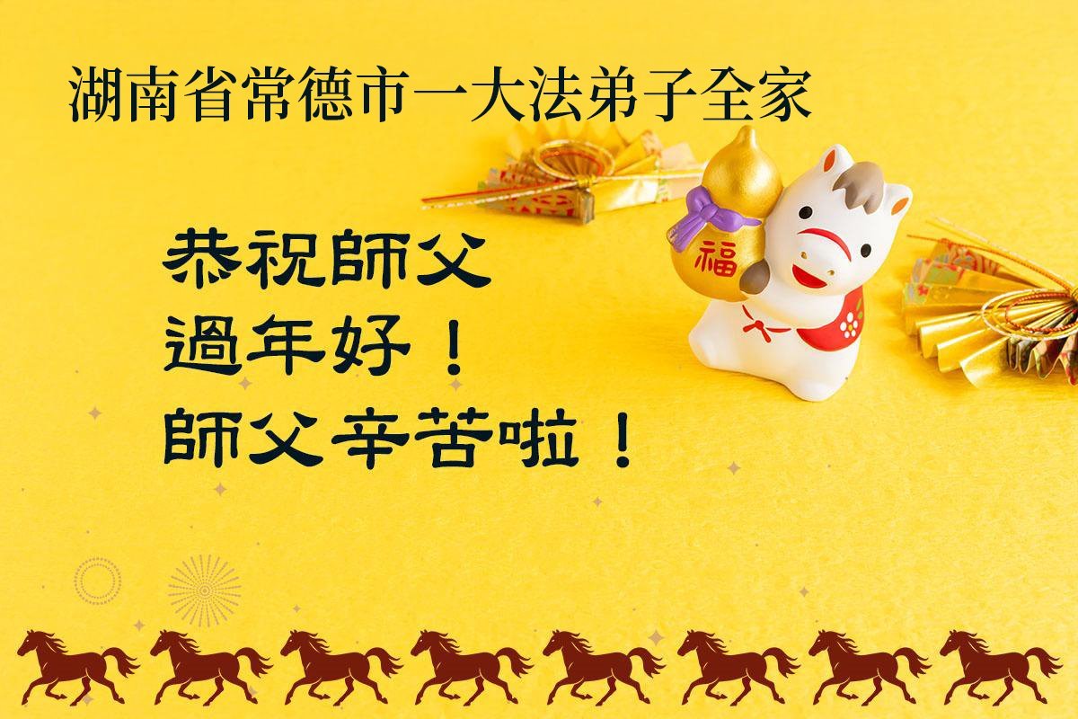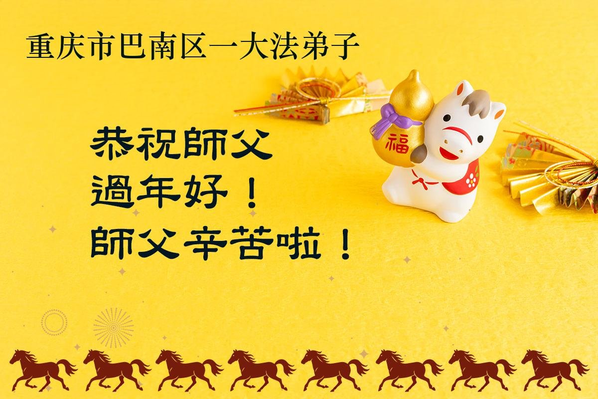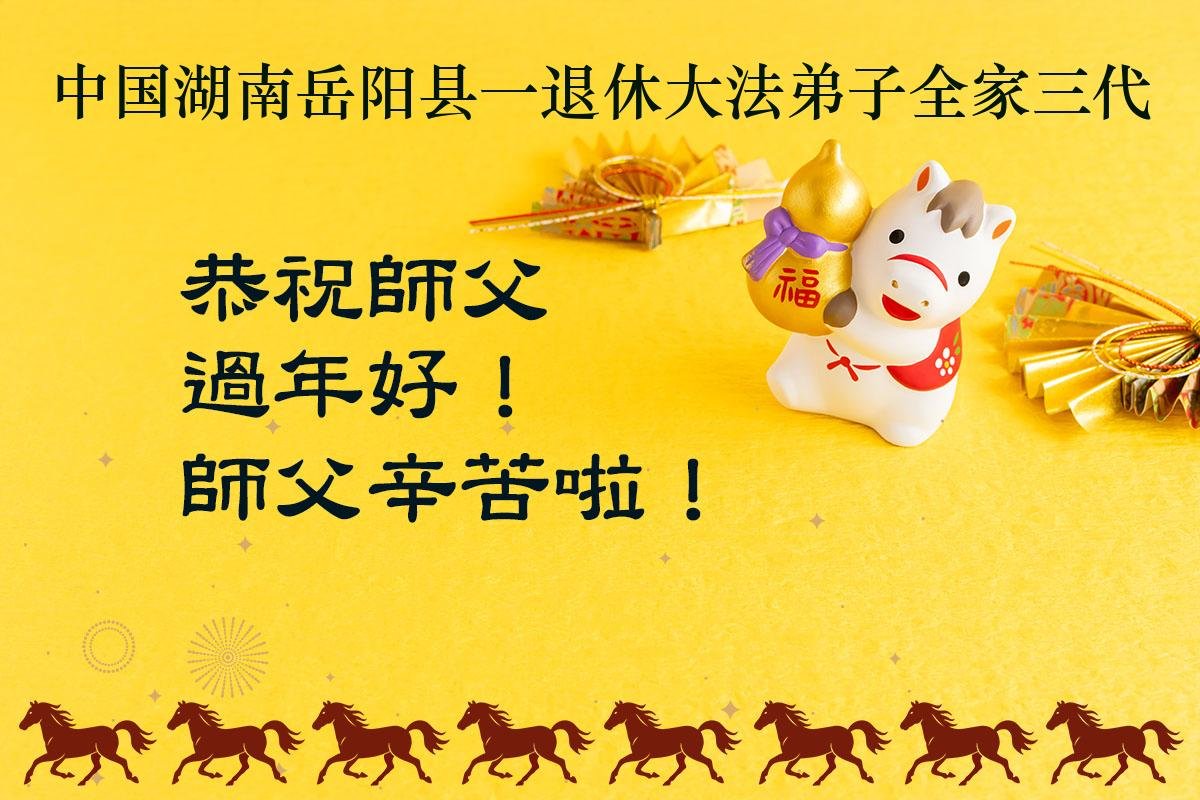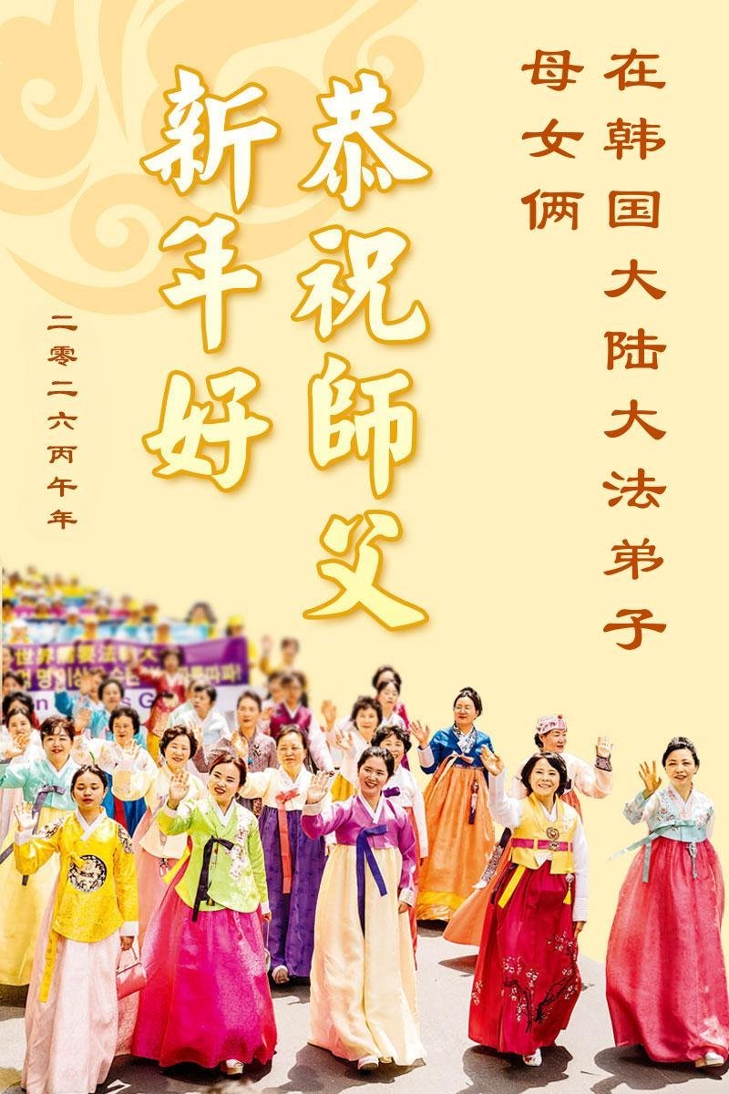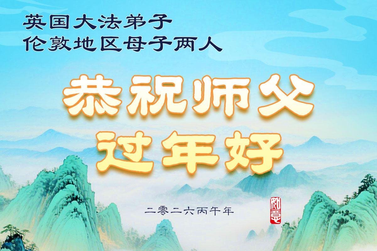 师父,祝您新年快乐!我非常幸运能得大法,我会努力改進我的言行举止。我很幸运,师父救了我一命:当时我开车时被一辆飞驰的摩托车撞倒,我闭上了眼睛,没有意识到发生了什么。师父,我的母亲也得到您的保护。