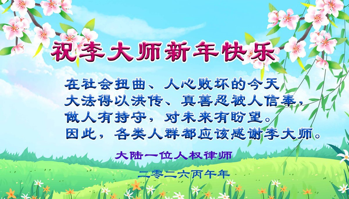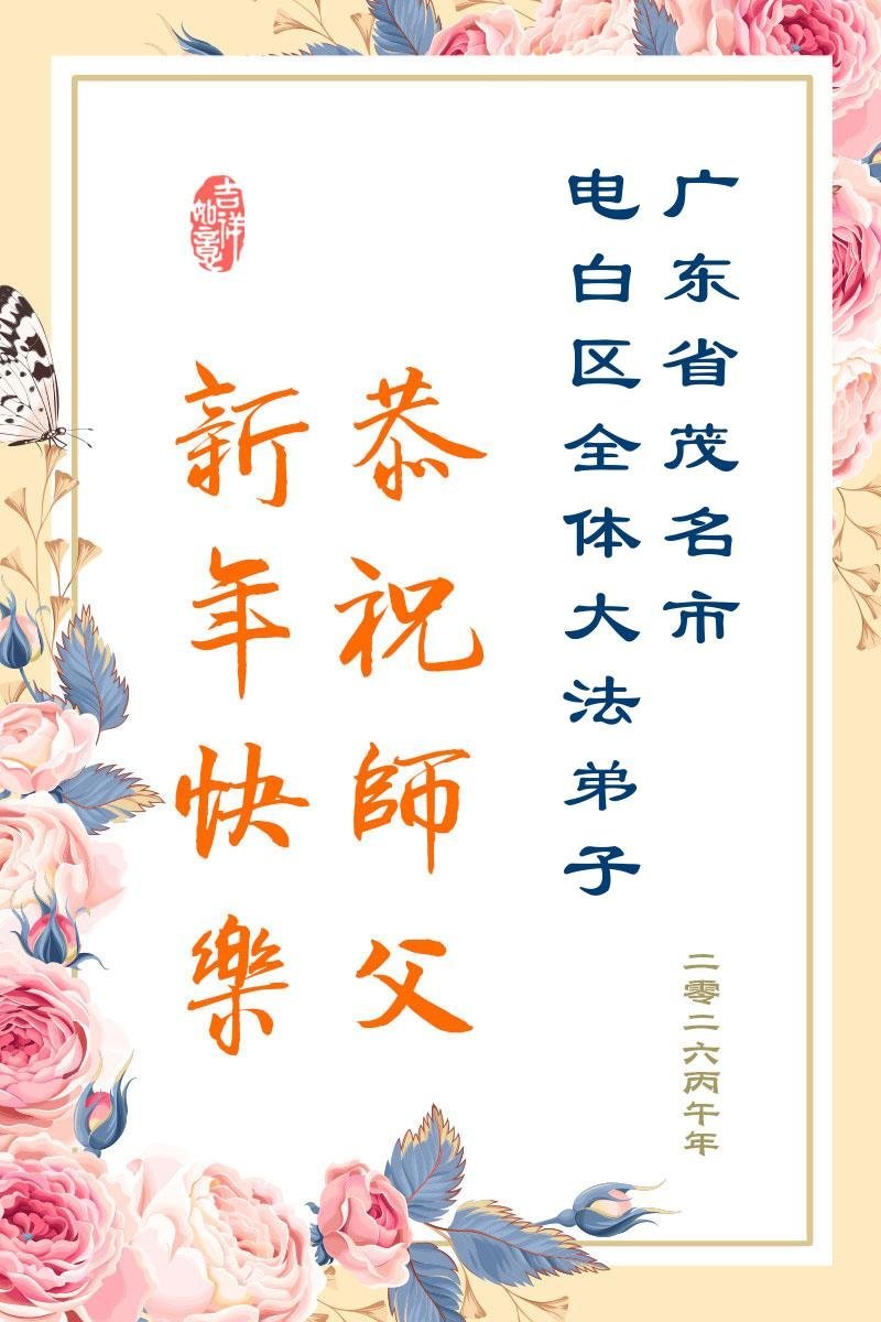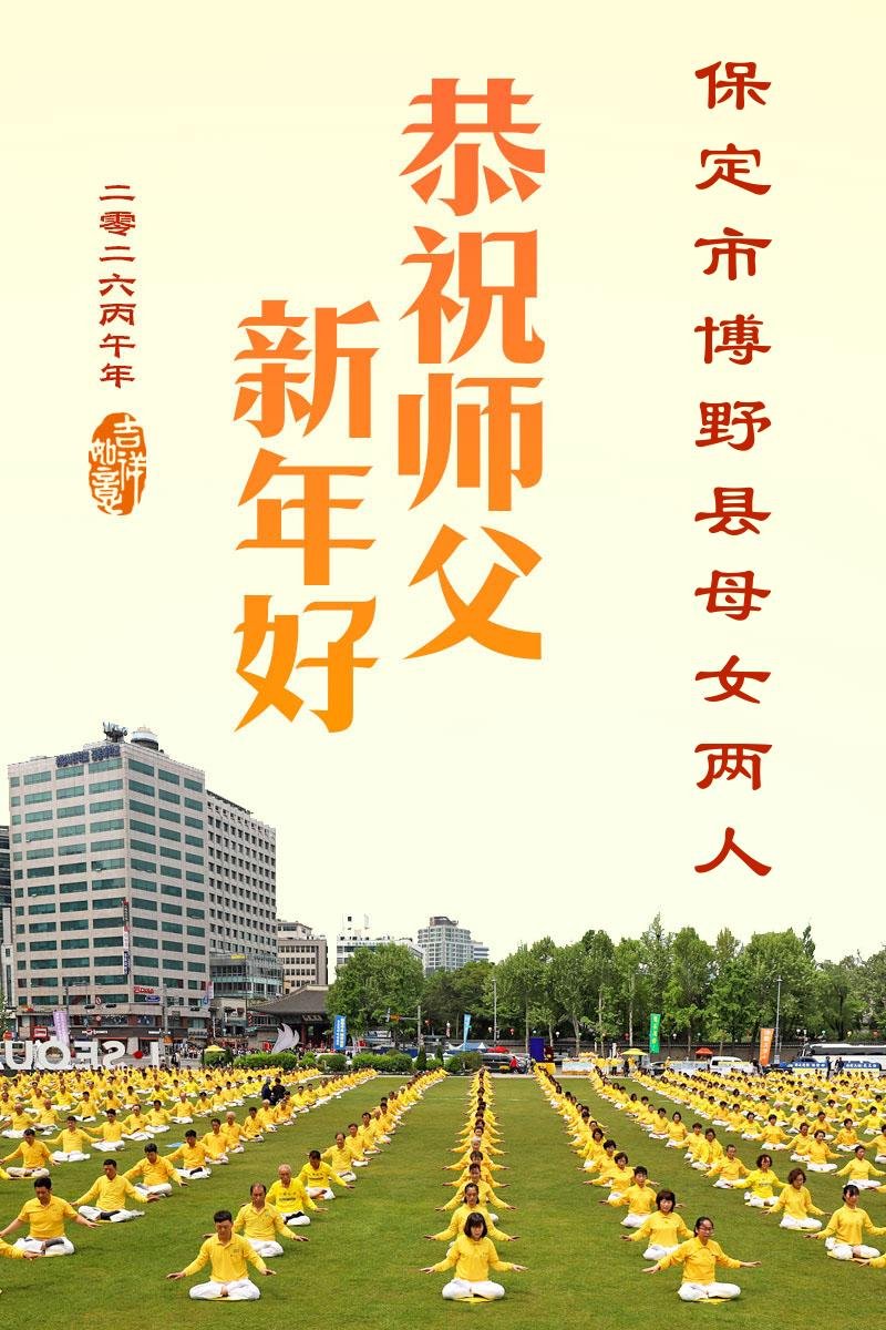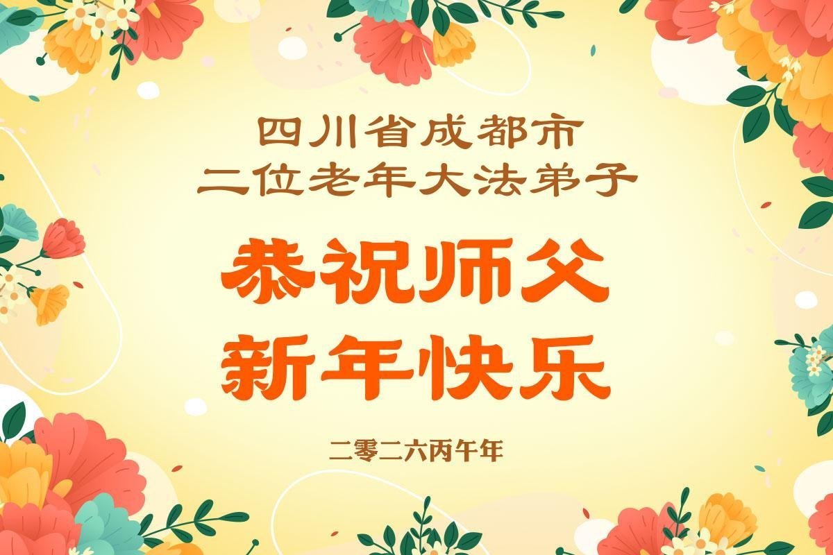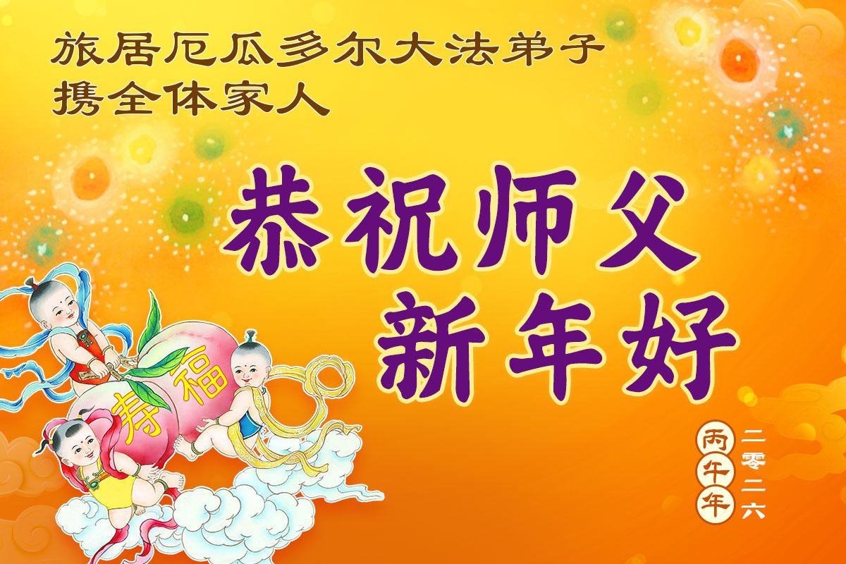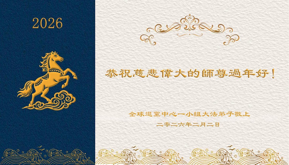 师父,祝您新年快乐!我非常幸运能得大法,我会努力改進我的言行举止。我很幸运,师父救了我一命:当时我开车时被一辆飞驰的摩托车撞倒,我闭上了眼睛,没有意识到发生了什么。师父,我的母亲也得到您的保护。