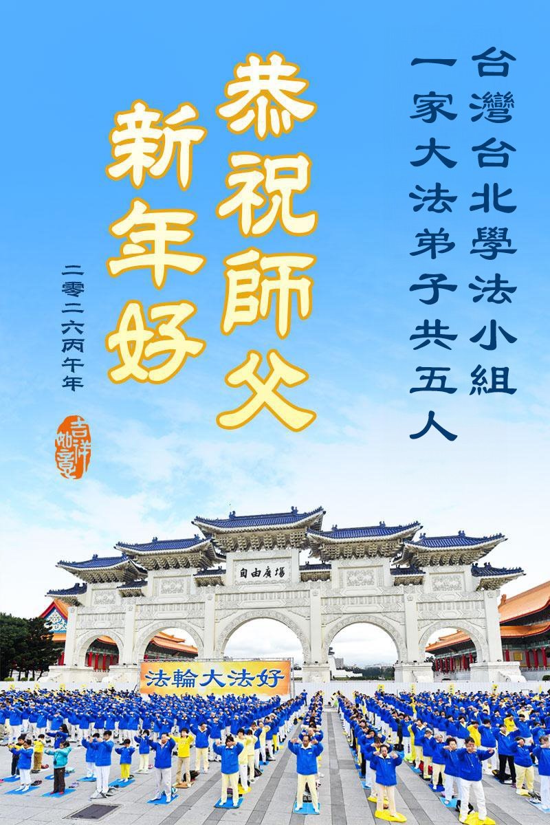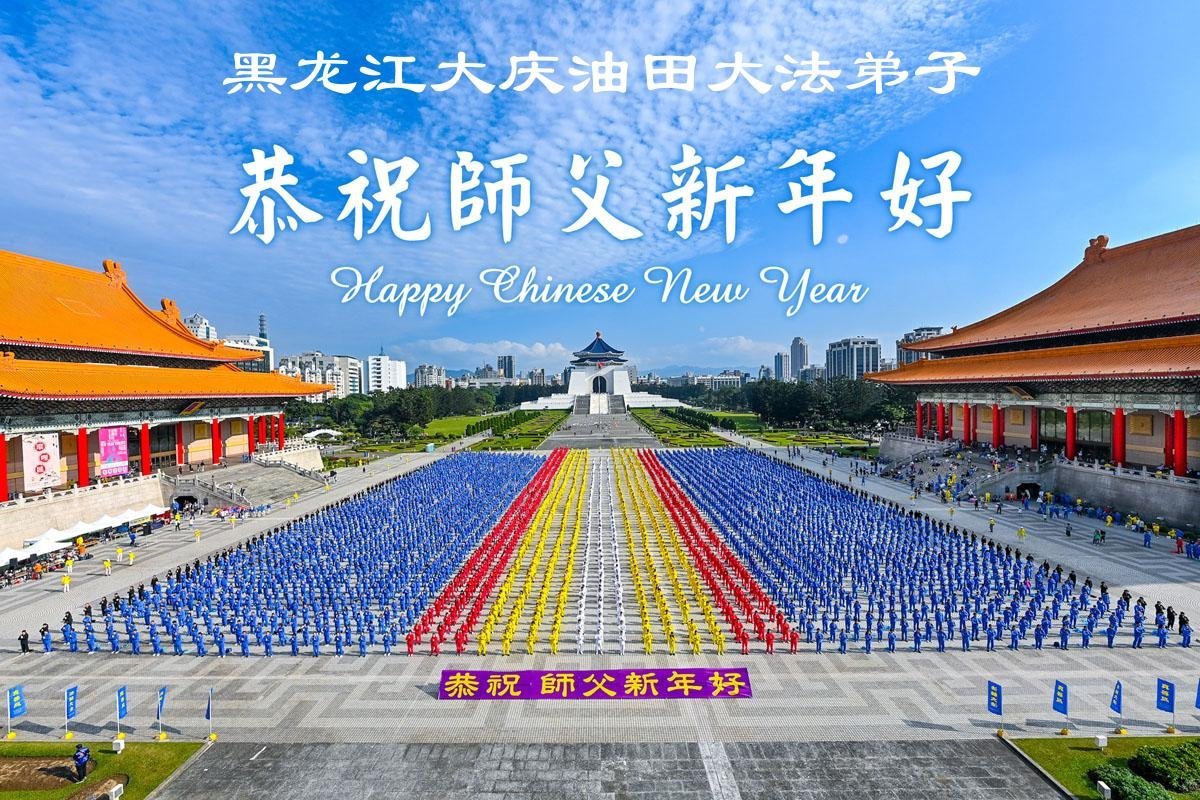 弟子们在板桥区府中广场恭祝李洪志师父丙午年新年好!弟子们以最诚摰的心情齐声祝贺:“恭祝师父新年好!法轮大法好,真善忍好!”并一起颂唱《法轮大法好》、《师父啊,谢谢您!》两首歌曲,表达弟子们对师父的无限感恩。