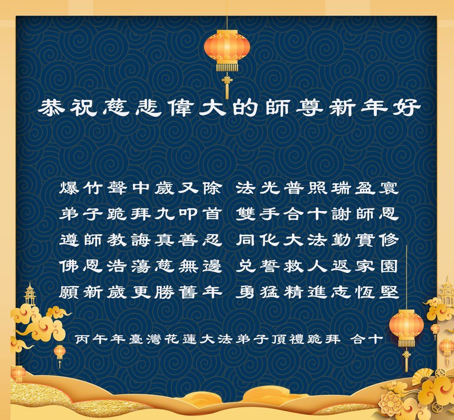 我们亲爱的慈悲的师父好,值此中国新年之际,我们衷心祝您新年快乐!