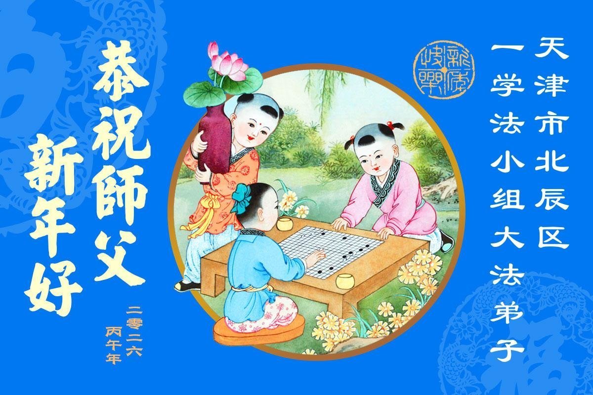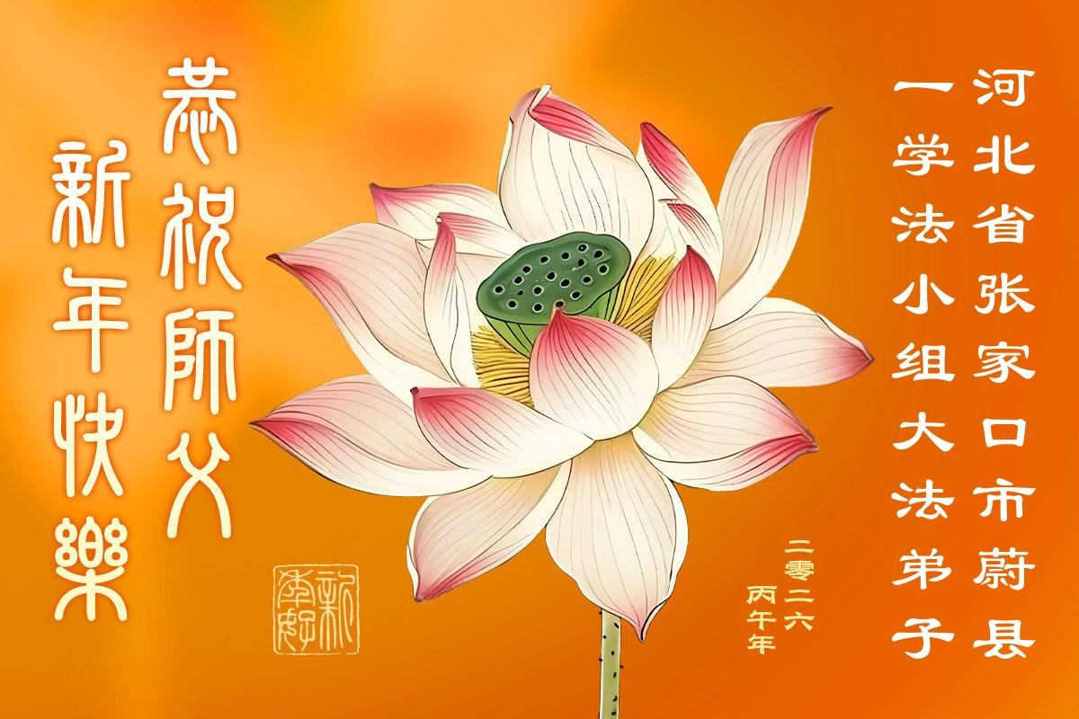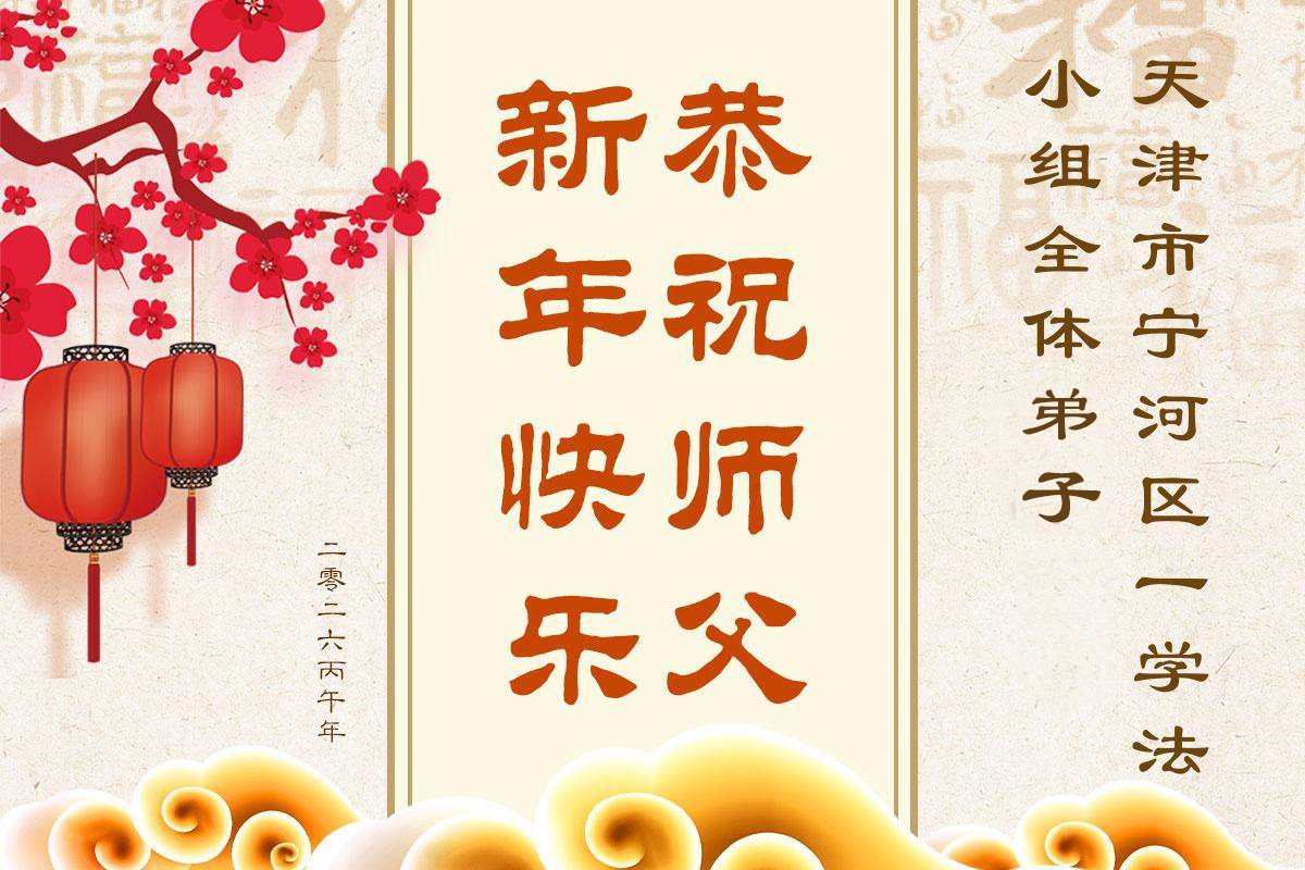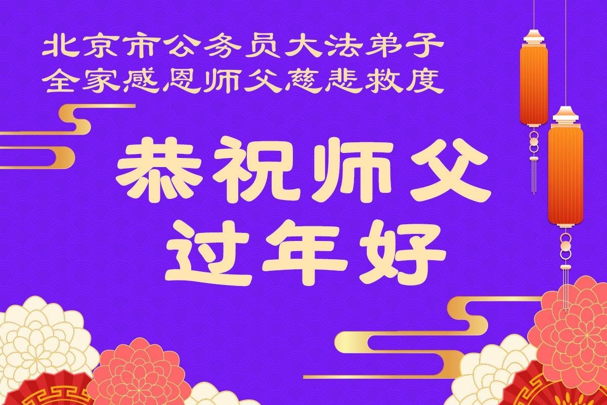 在新的一年到来之际,我们北京学法小组全体大法弟子向慈悲伟大的师尊拜年!师父您好!您辛苦了!我们有信心和决心在新的一年遵照师尊的谆谆教导,修去人心,做好三件事,学法修心向内找,讲真相,做个名副其实的大法弟子,跟师父回家。