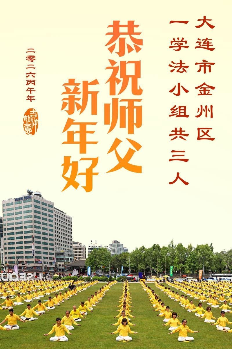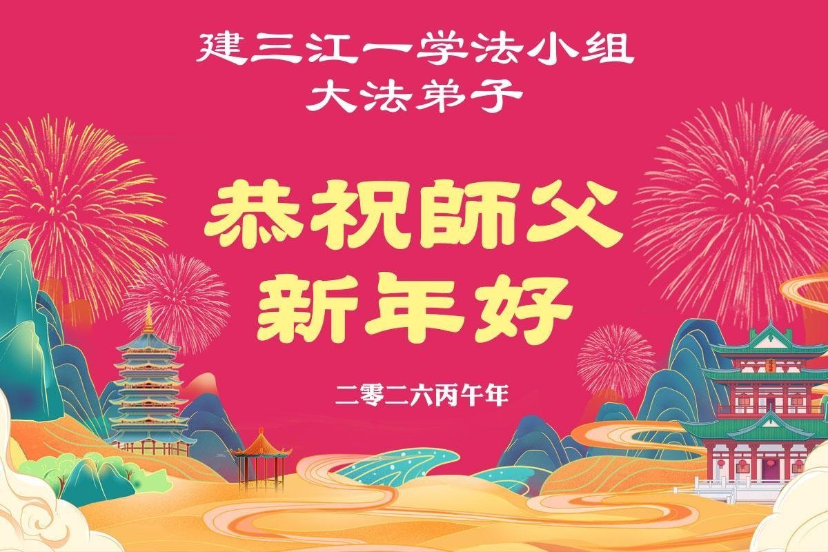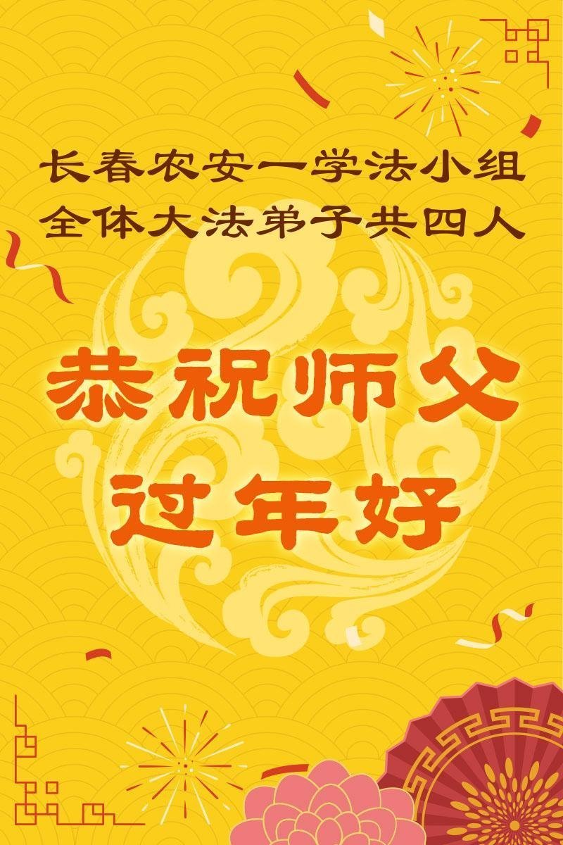 恭祝慈悲伟大的师尊过年好!弟子们成立学法小组时,想到没被迫害之前师尊当年给弟子们留下的炼功场、学法场,那壮观的景象,现在还依然历历在目,大家在一起学法、炼功、家庭和睦、走路生风,整个社会都处于和睦状态……弟子们会多学法、以法为师、共同精進、共同配合,做好三件事,圆满随师还。