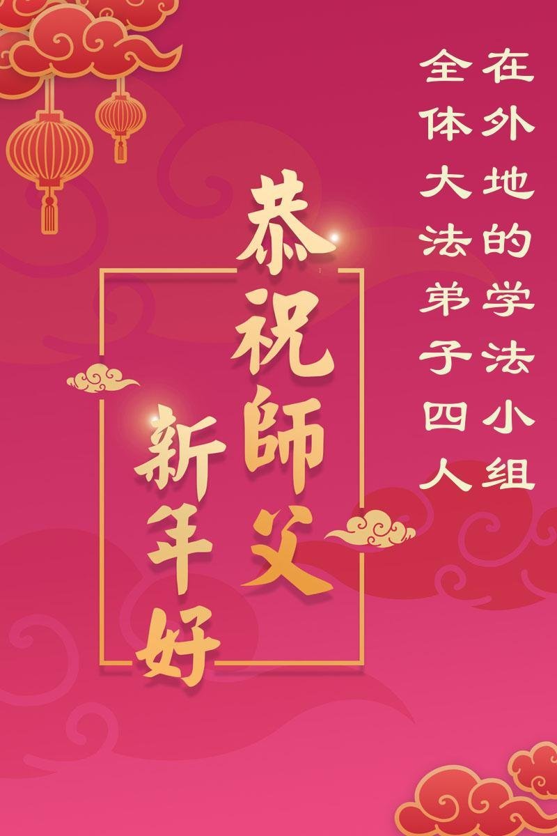感谢师父对弟子们时时刻刻的看护!为了我们这些在外地的大法弟子不至于落下,安排机缘让我们天南海北的大法弟子能够相识,能在一起学法、修炼。我们都无比的感恩师父给我们这个机会,谢谢师父!弟子们也会把握好这个机会,精進实修,走好师父给安排的路。师父为弟子们的修炼操尽了心,费尽了心血,一步一步的引领着我们走好修炼的路。没有语言能表达弟子对师父的感恩!师父您辛苦了!谢谢师父!新年到来的时刻,我们在外地的学法小组四人给师父拜年了!
