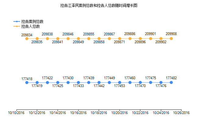 从2015年5月底到2016年10月25日,明慧网已收到总数209908名(177482案例)